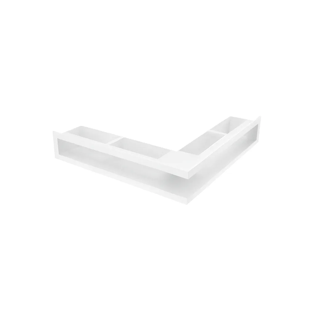 Graças ao seu design assimétrico, adapta-se perfeitamente a instalações em canto, permitindo uma distribuição eficiente do ar quente em locais onde grelhas tradicionais não seriam adequadas. O acabamento em aço pintado branco confere-lhe durabilidade, resistência ao calor e um visual elegante e discreto.